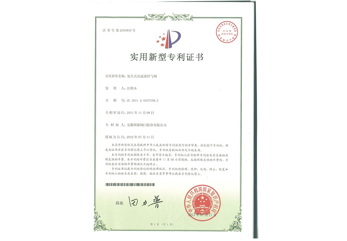 復(fù)合式高速進排氣閥