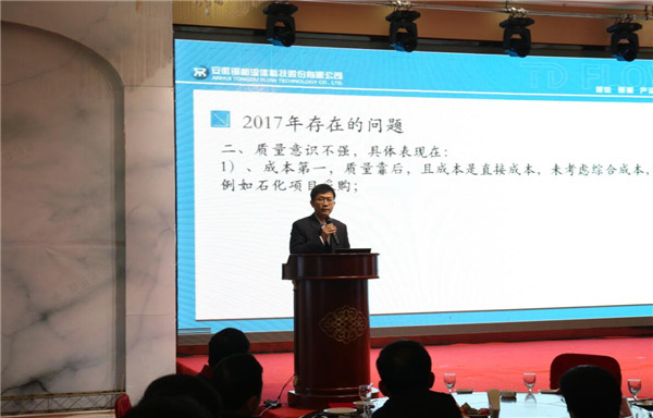 年會上,公司副總經(jīng)理楊凌杰作2017年度營銷工作報告, 公司總經(jīng)理趙小虎對2017年度工作作了全面總結(jié),充分肯定了公司近三年來各項核心指標(biāo)均實現(xiàn)兩位數(shù)增長的成績,指出了目前管理工作中存在的不足,提出了具體改進(jìn)措施,并明確了2018年核心經(jīng)營目標(biāo)。公司董事長楊成結(jié)合行業(yè)及公司當(dāng)前發(fā)展趨勢,從公司長遠(yuǎn)發(fā)展、做大做強(qiáng)戰(zhàn)略高度,深刻分析了銅都流體面臨嚴(yán)峻的挑戰(zhàn)形勢,并指明企業(yè)的發(fā)展策略以及發(fā)展措施,并號召全體員工不忘初心,繼續(xù)發(fā)力,使銅都流體新年再上新臺階。