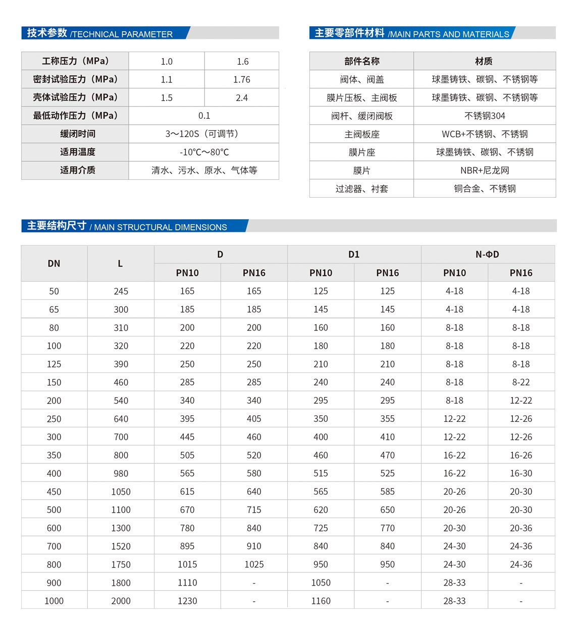 7、DN500口徑以下選用膜片式,DN500口徑以上選用活塞式。